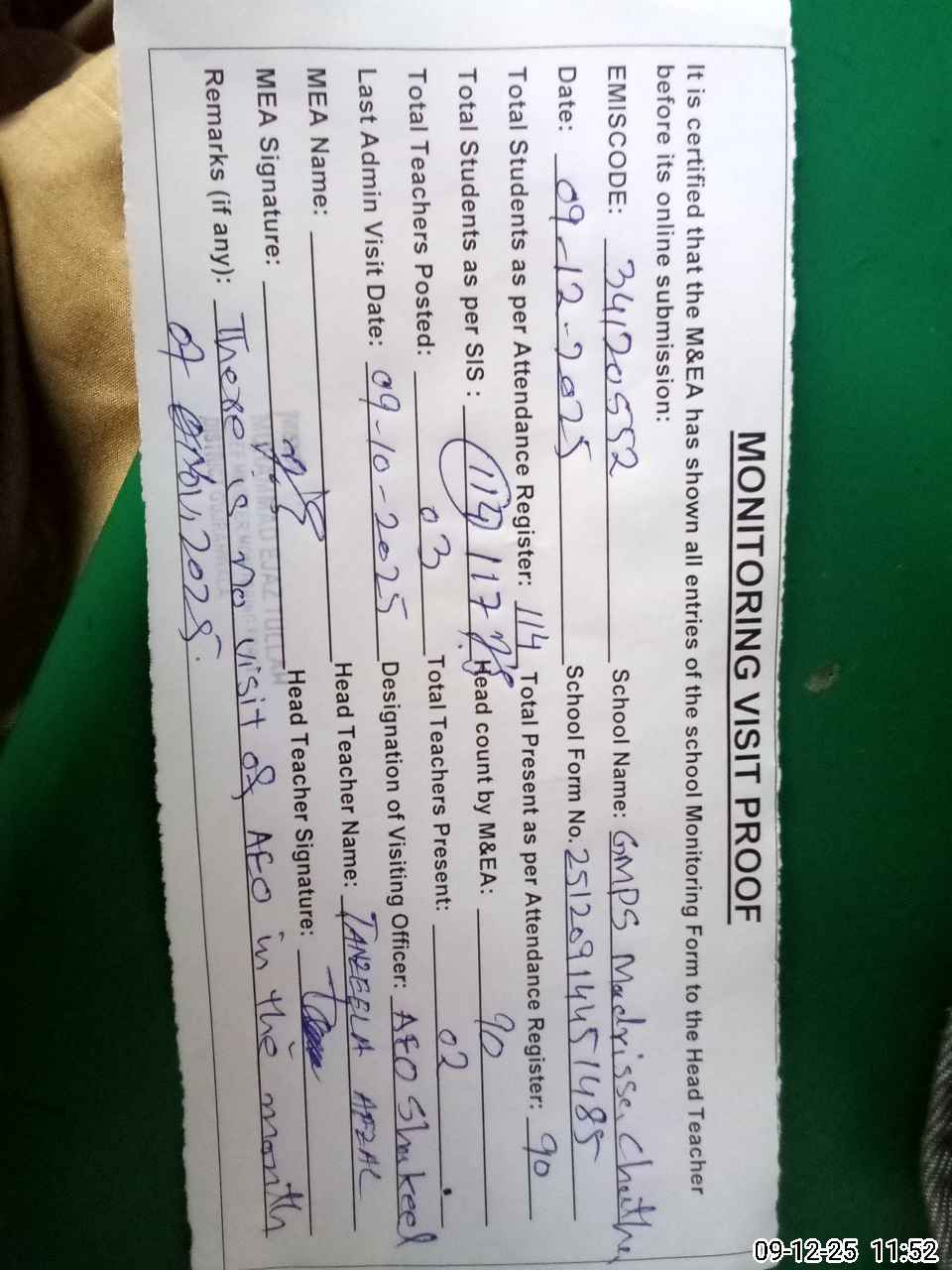 | EMIS Code: 34120552 | Name of School: GMPS MADDRISSA CHATHA | |||