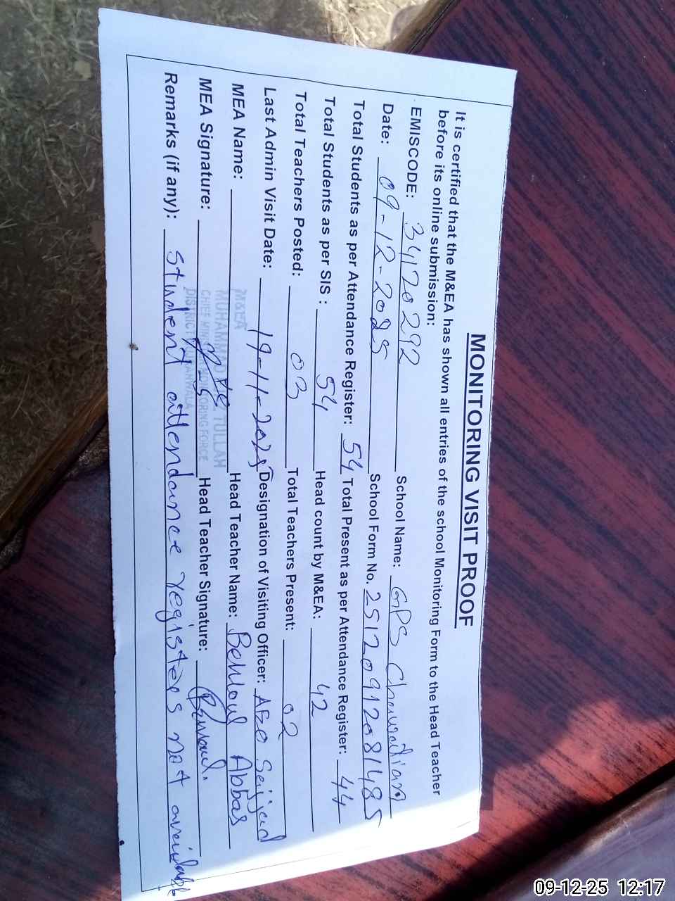 | EMIS Code: 34120292 | Name of School: GPS CHAWATIAN CHATHA | |||