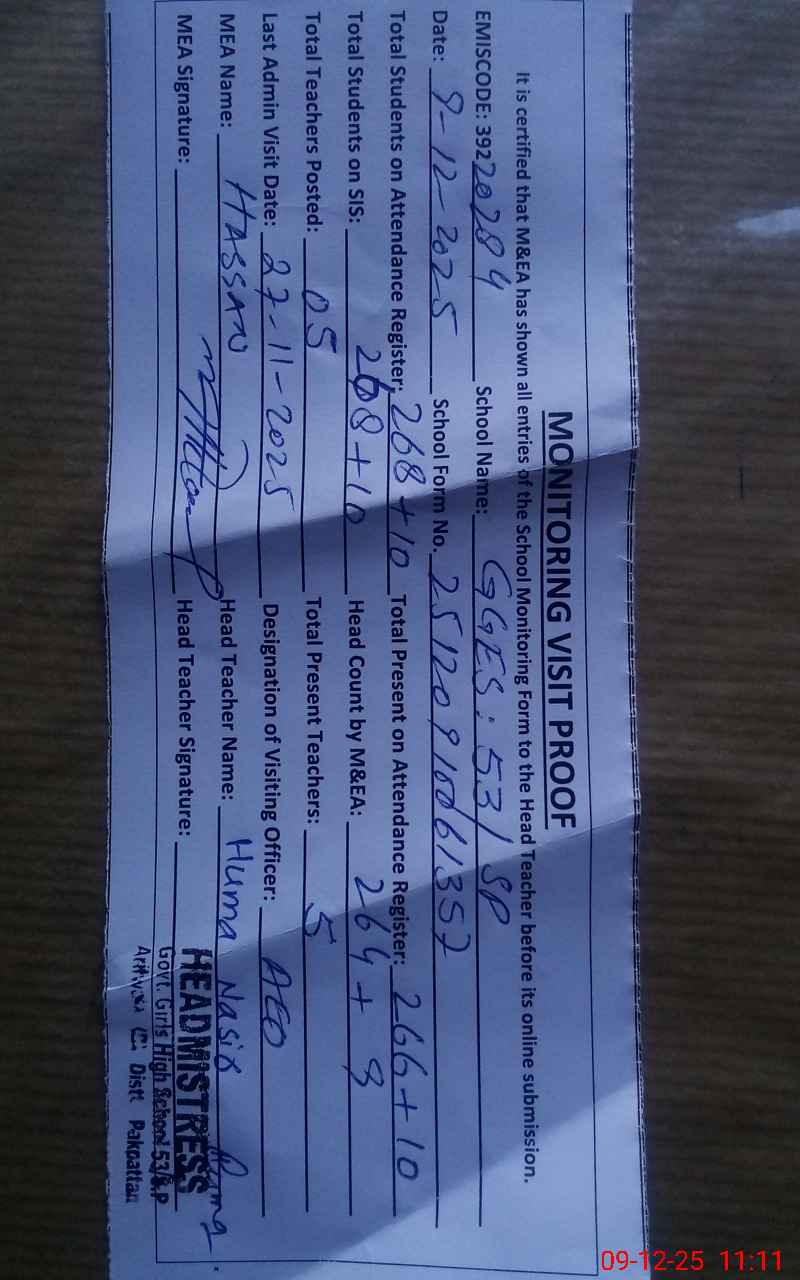 | EMIS Code: 39220284 | Name of School: GGES 53 SP POST OFFICE JEVEN SHAH | |||
