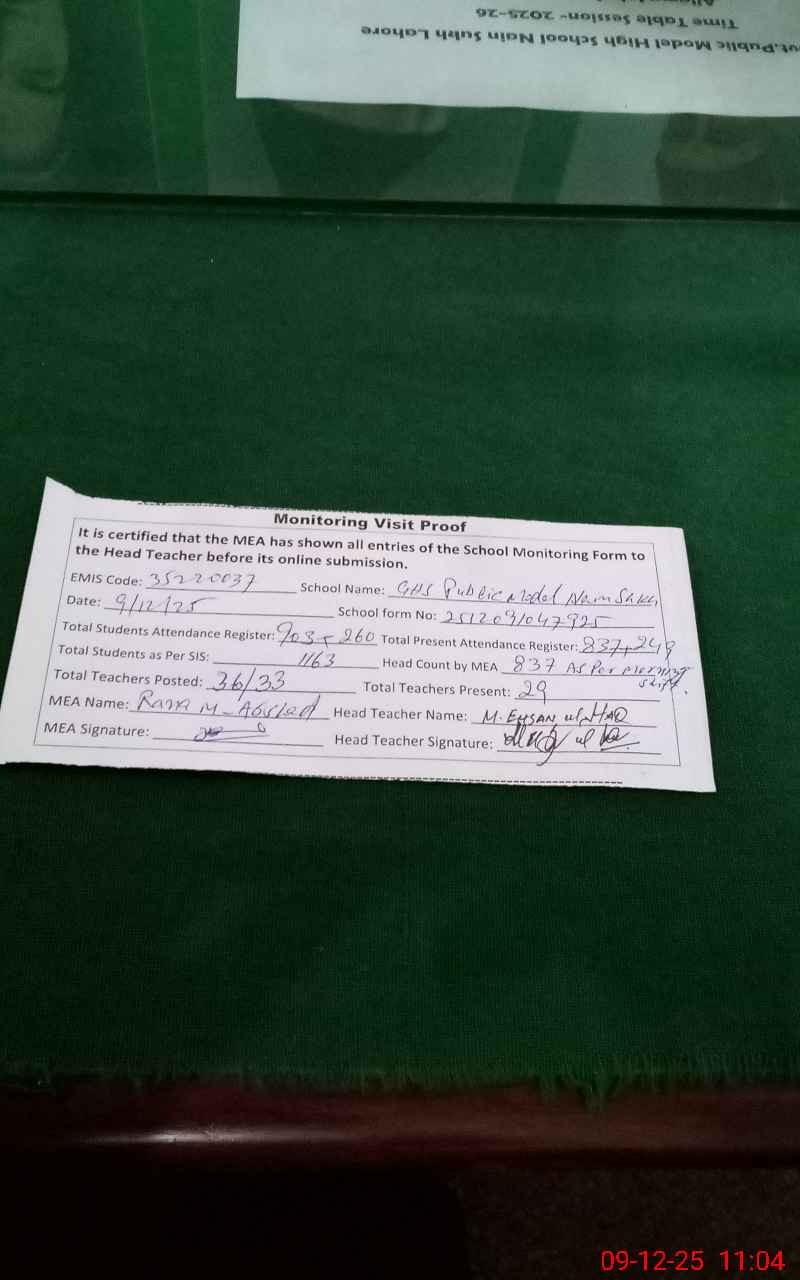 | EMIS Code: 35220037 | Name of School: GHS PUBLIC MODEL NAIN SUKH SHAHDARA | |||