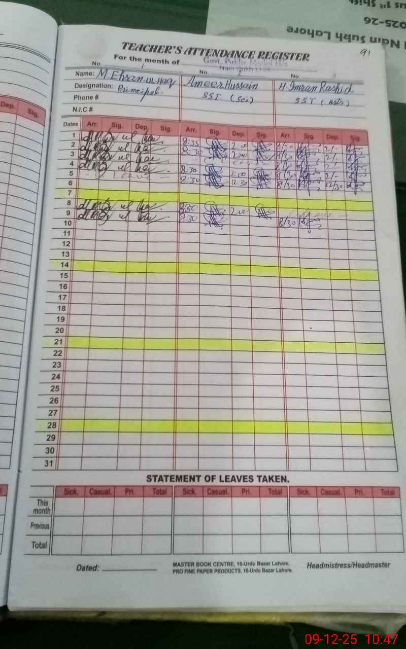 | Name: Mu**** Eh**** UlHa**** Designation: (School Headmaster's/Headmistress's) Principal Phone/Cell Number: 03**** |