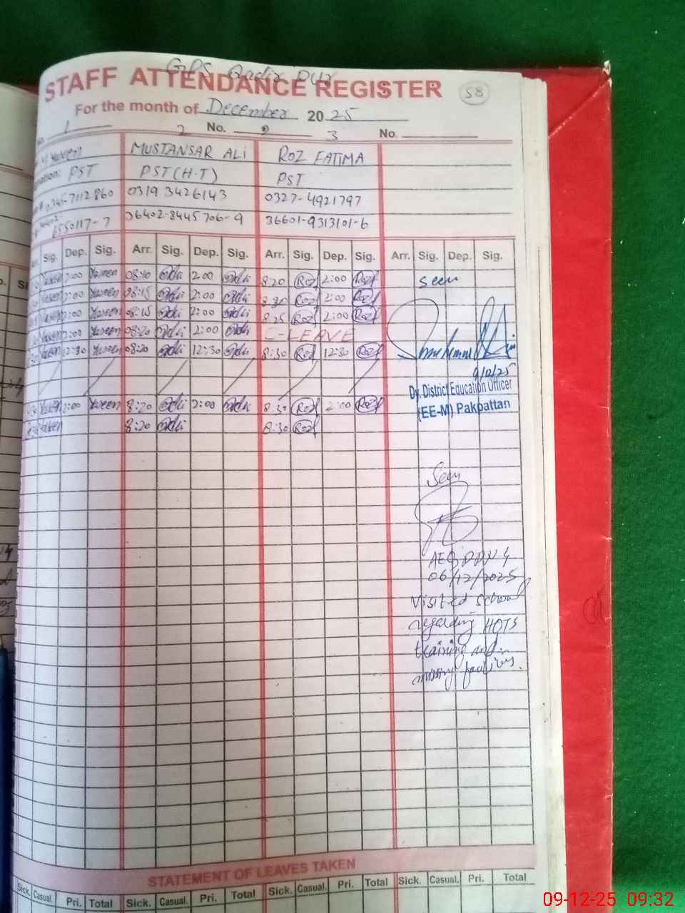 | Name: Mu**** Al**** Designation: (School Headmaster's/Headmistress's) PST Phone/Cell Number: 03**** |