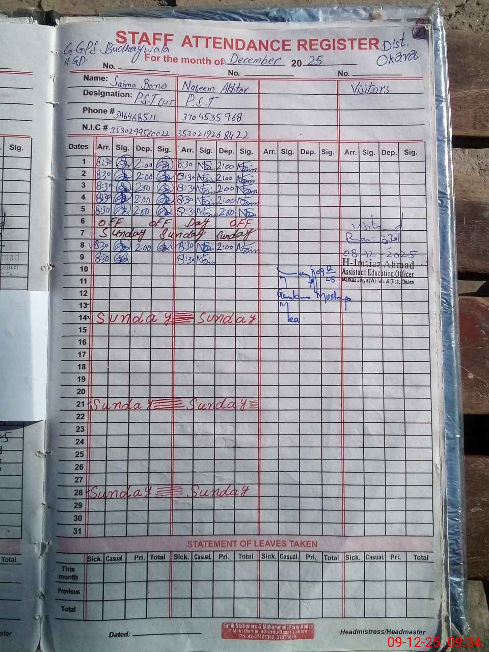 | Remarks (Use Separate Page if Required): Last visit by AEO is on 08 .12 .25 | |||||