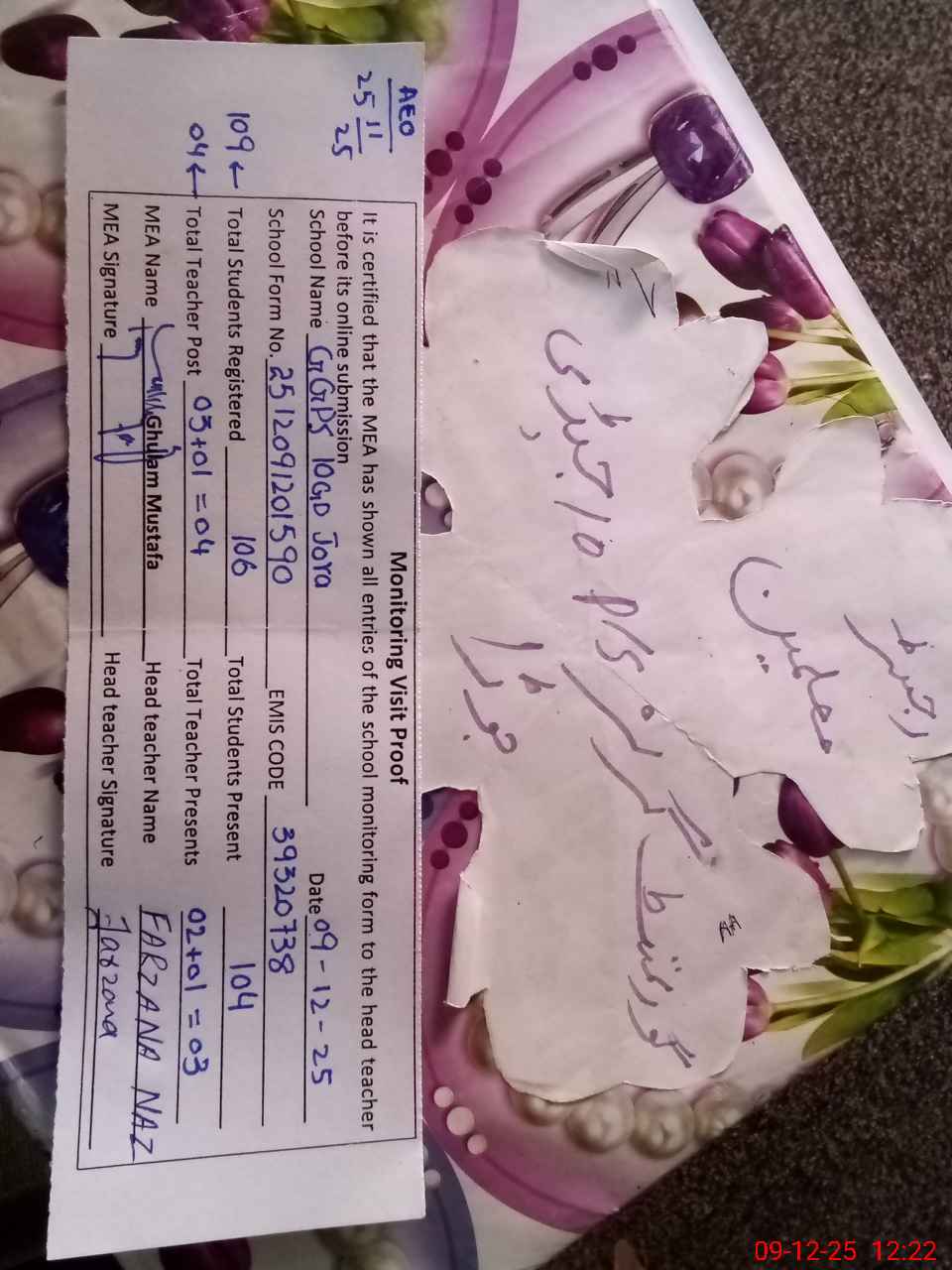 | EMIS Code: 39320738 | Name of School: GGPS 10/G.D JORA | |||
