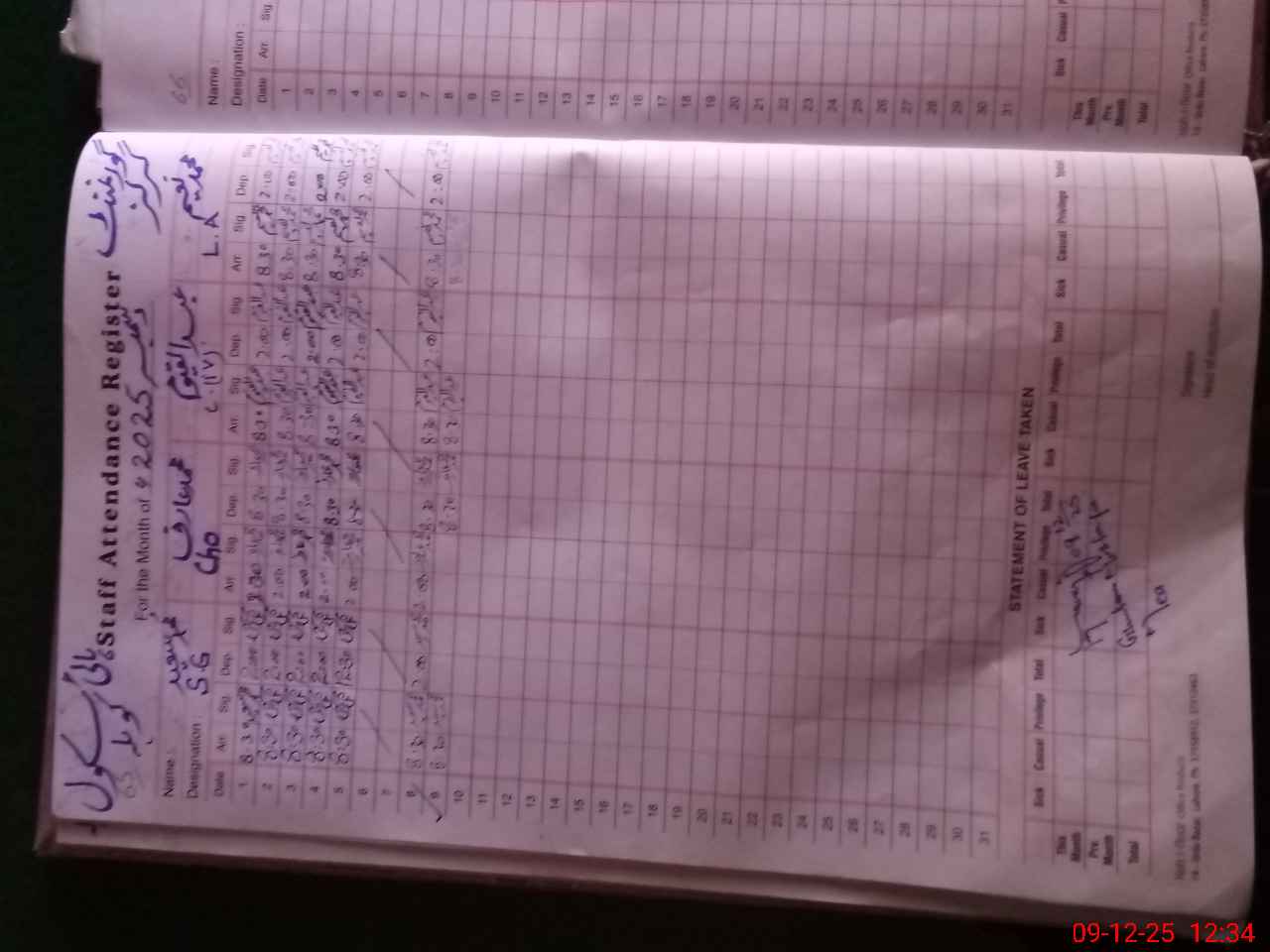 | CNIC | Full Name | Designation | R/C | Absence During Last Calender Month |