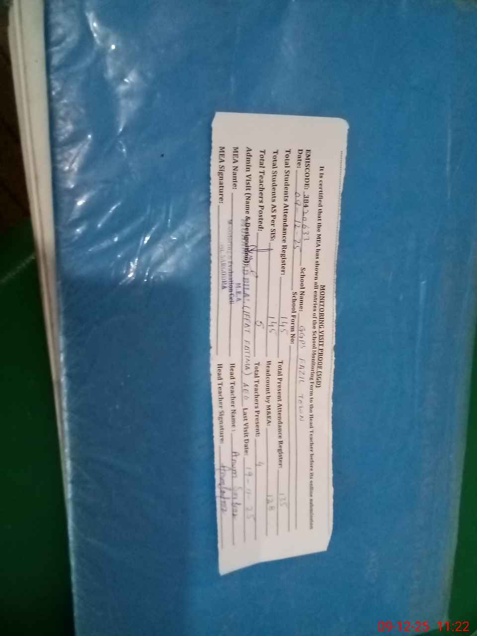 | Attendance Register | Head Teacher | MEA with School | Visit Proof |