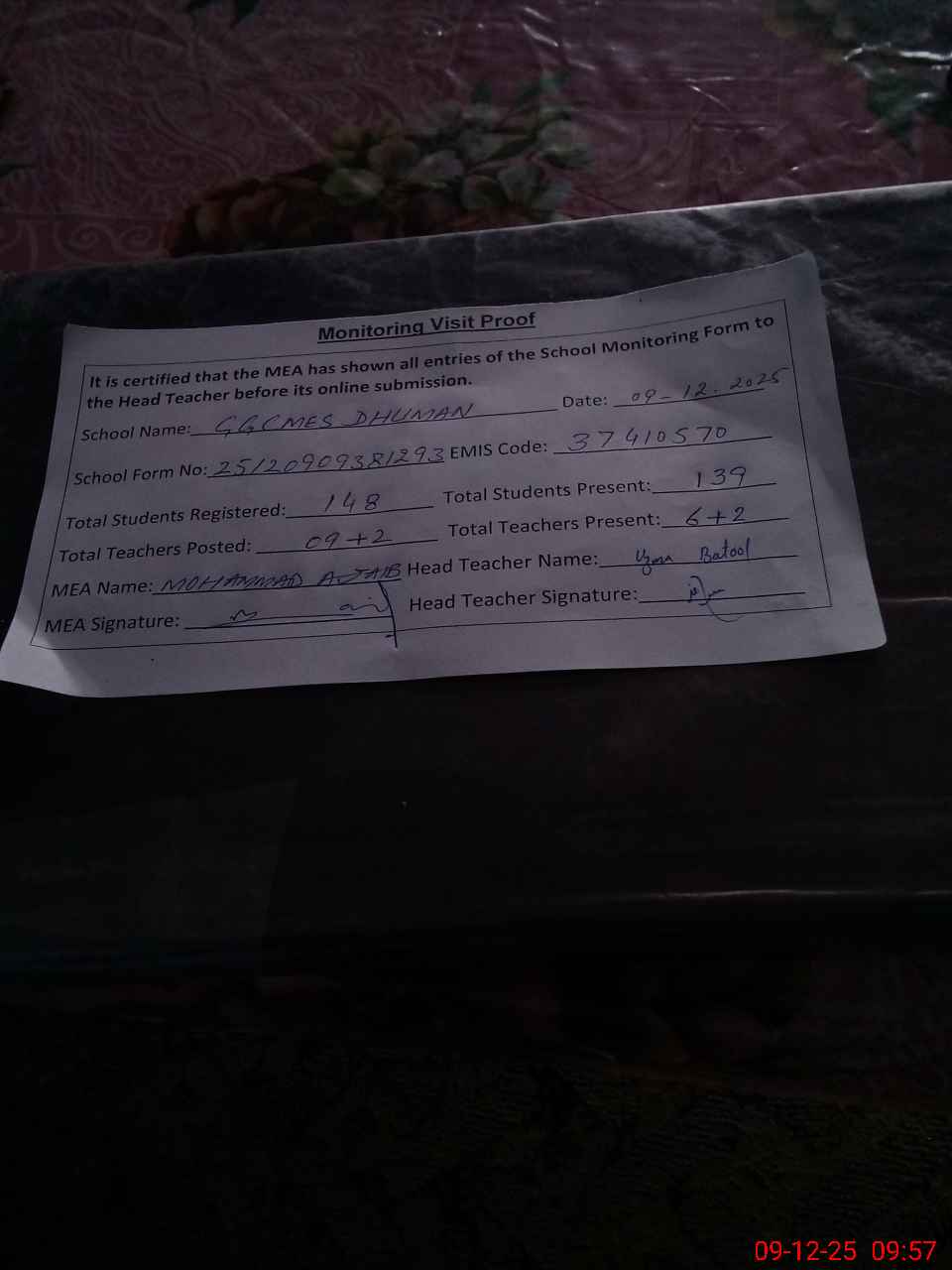 | EMIS Code: 37410570 | Name of School: GGCMES DHUMAN | |||