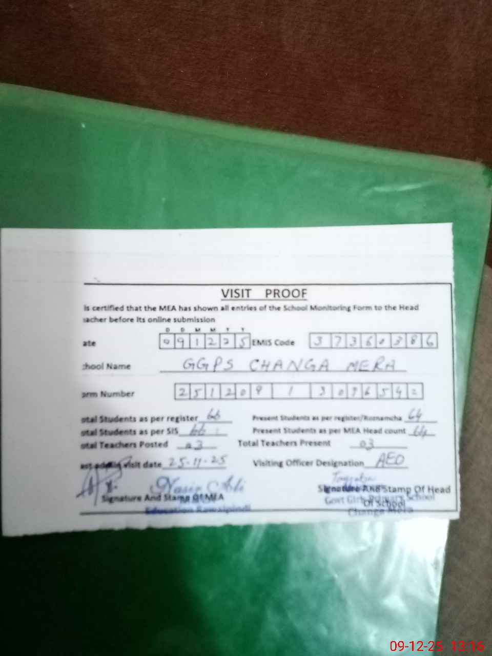 | EMIS Code: 37360386 | Name of School: GGPS CHANGA MERA | |||