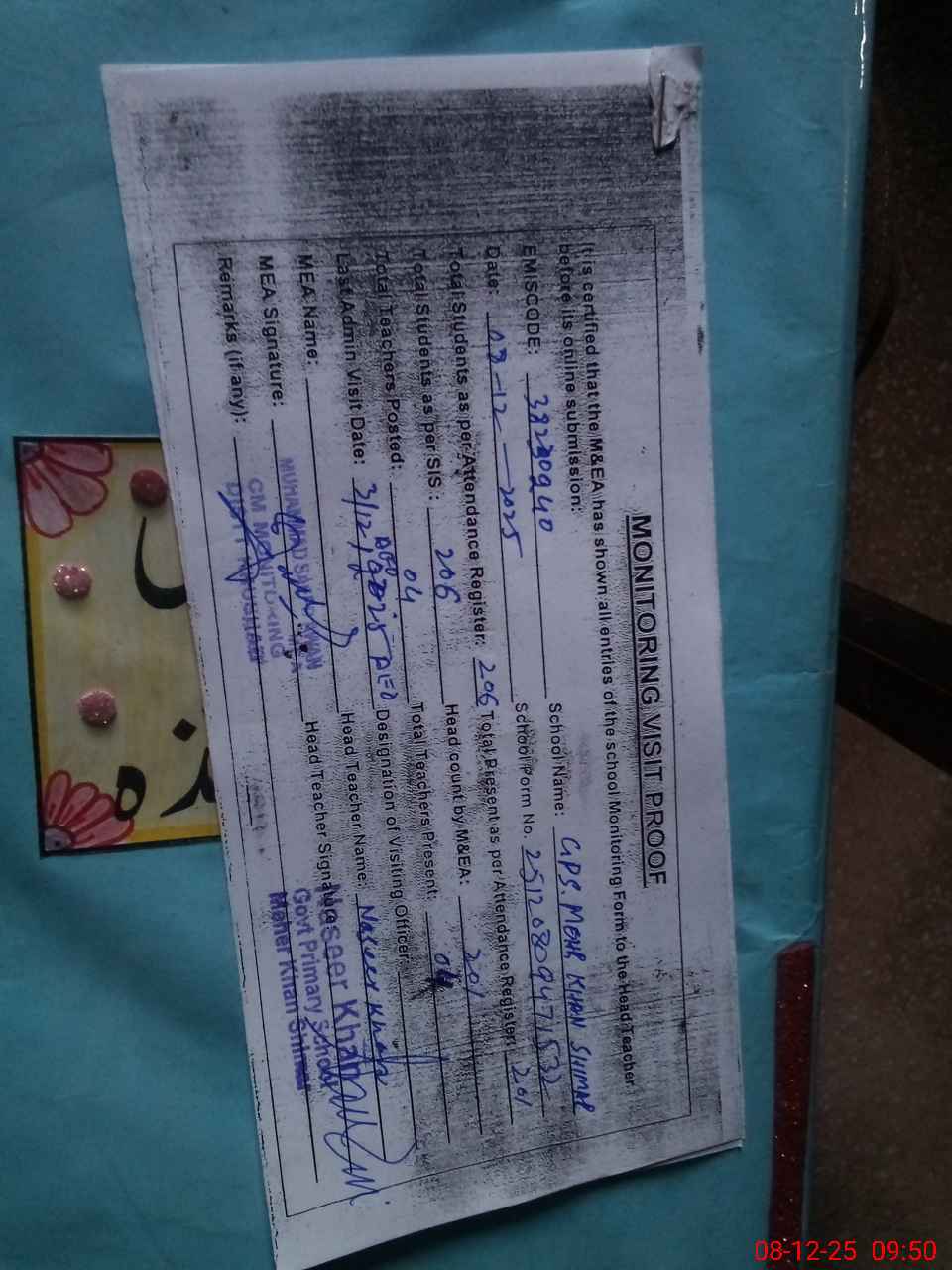 | EMIS Code: 38230240 | Name of School: GPS MEHR KHAN SHIMAR | |||