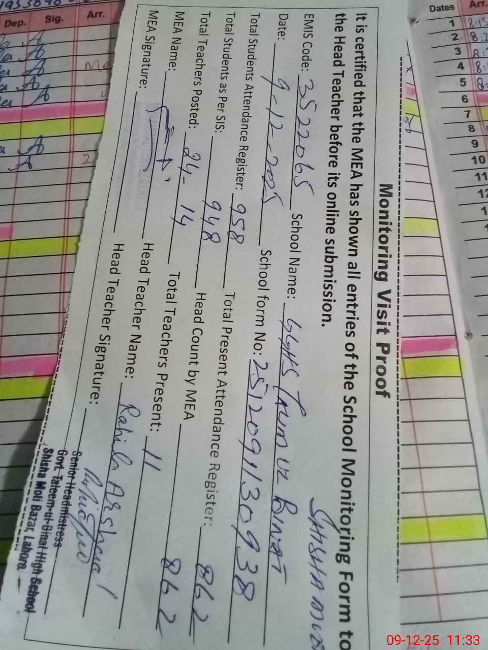 | EMIS Code: 35220065 | Name of School: GGHS TALIM UL BINAT SHESHA MOTI BAZAR LAHORE | |||