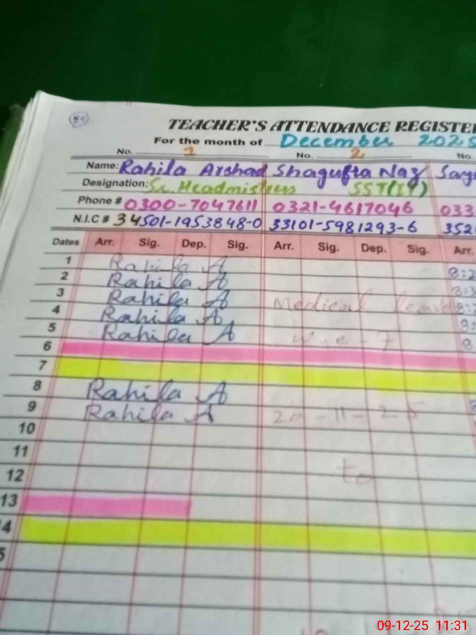 | Name: Ra**** Ar**** Designation: (School Headmaster's/Headmistress's) Senior Head Mistress Phone/Cell Number: 03**** |