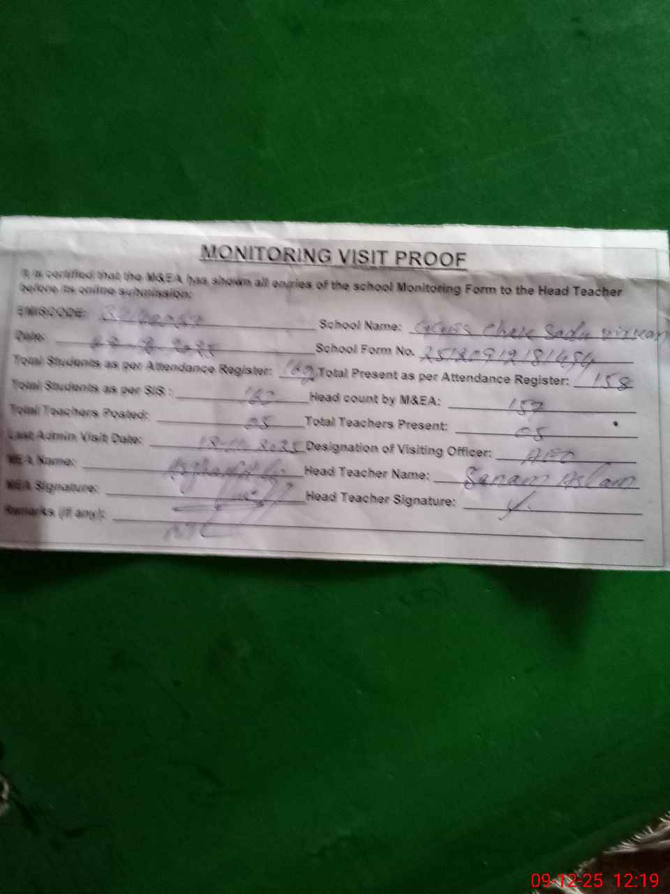 | EMIS Code: 34140067 | Name of School: GGES CHAK SADU VIRKAN | |||