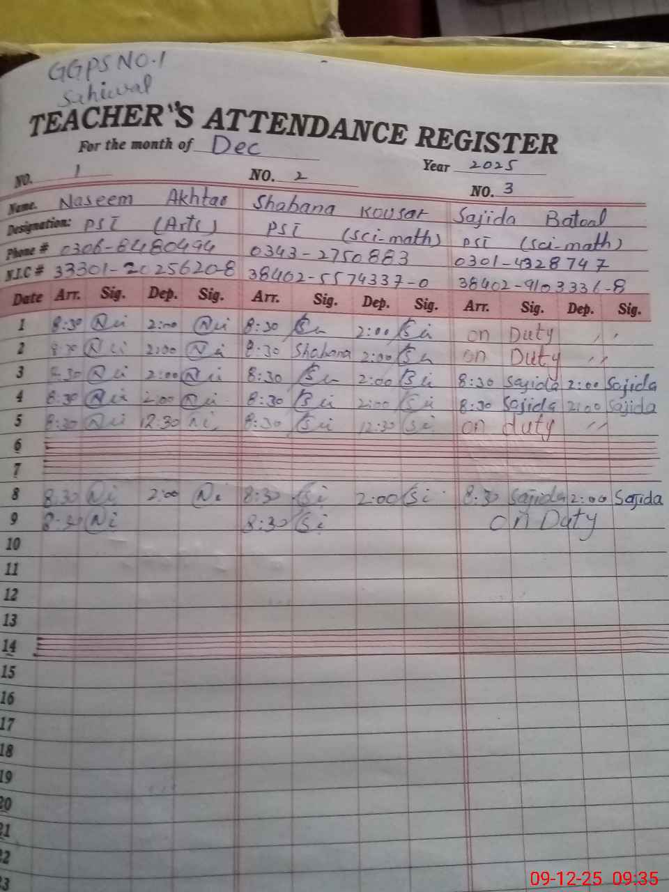 | Name: NA**** AK**** Designation: (School Headmaster's/Headmistress's) ESE (ARTS) Phone/Cell Number: 03**** |