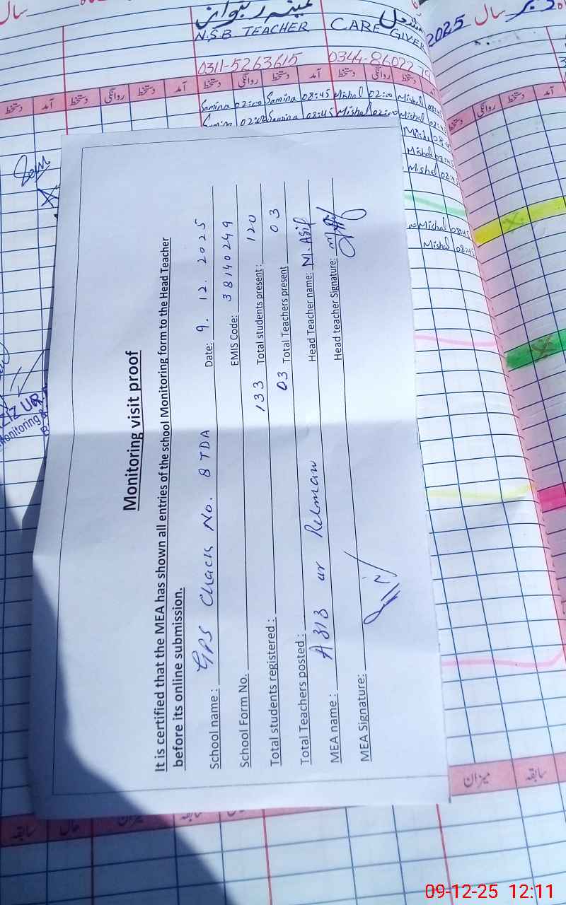 | EMIS Code: 38140249 | Name of School: GPS CHAK NO 8 TDA | |||