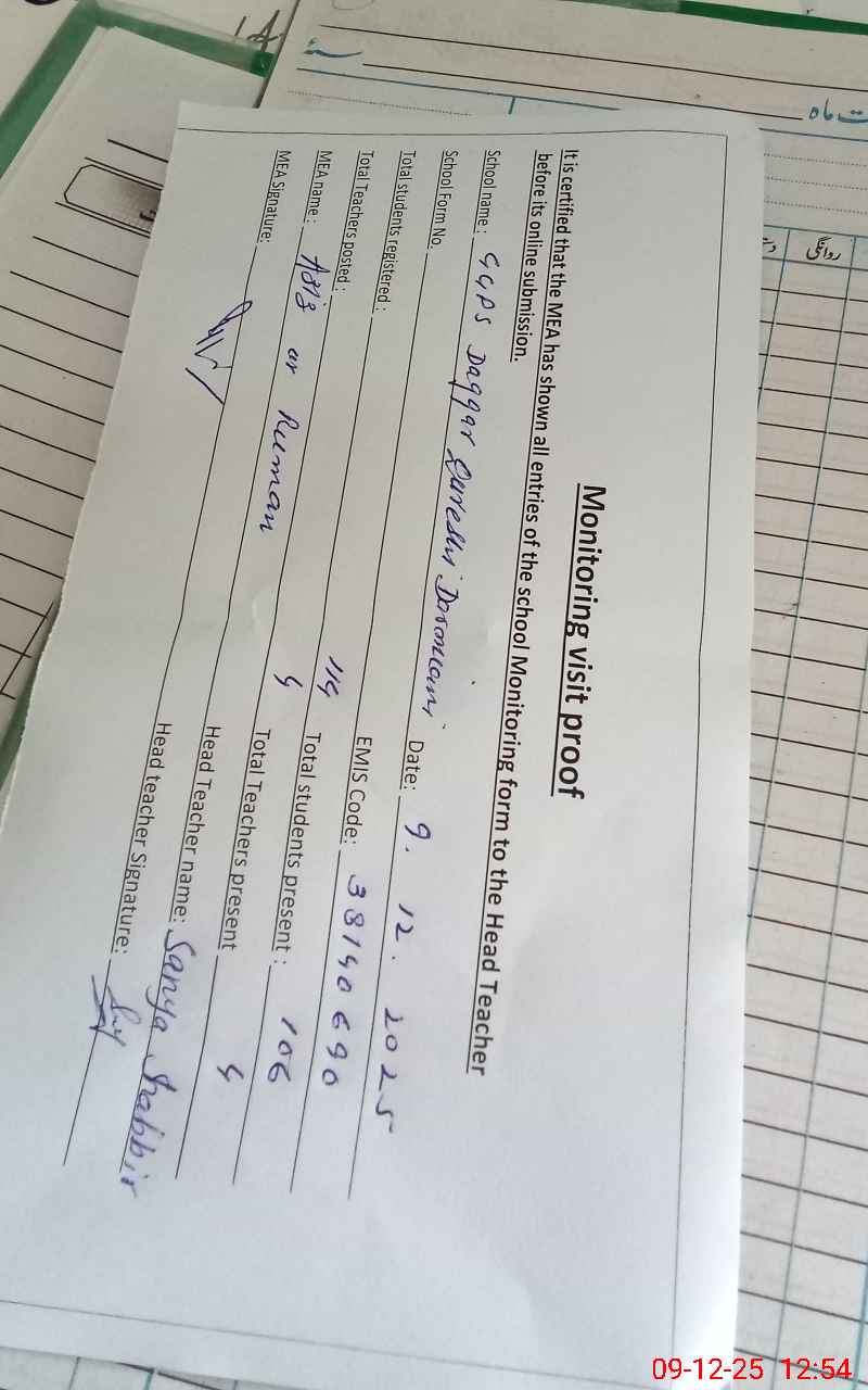 | EMIS Code: 38140690 | Name of School: GGPS DAGAR QURESHI DARMIANI | |||