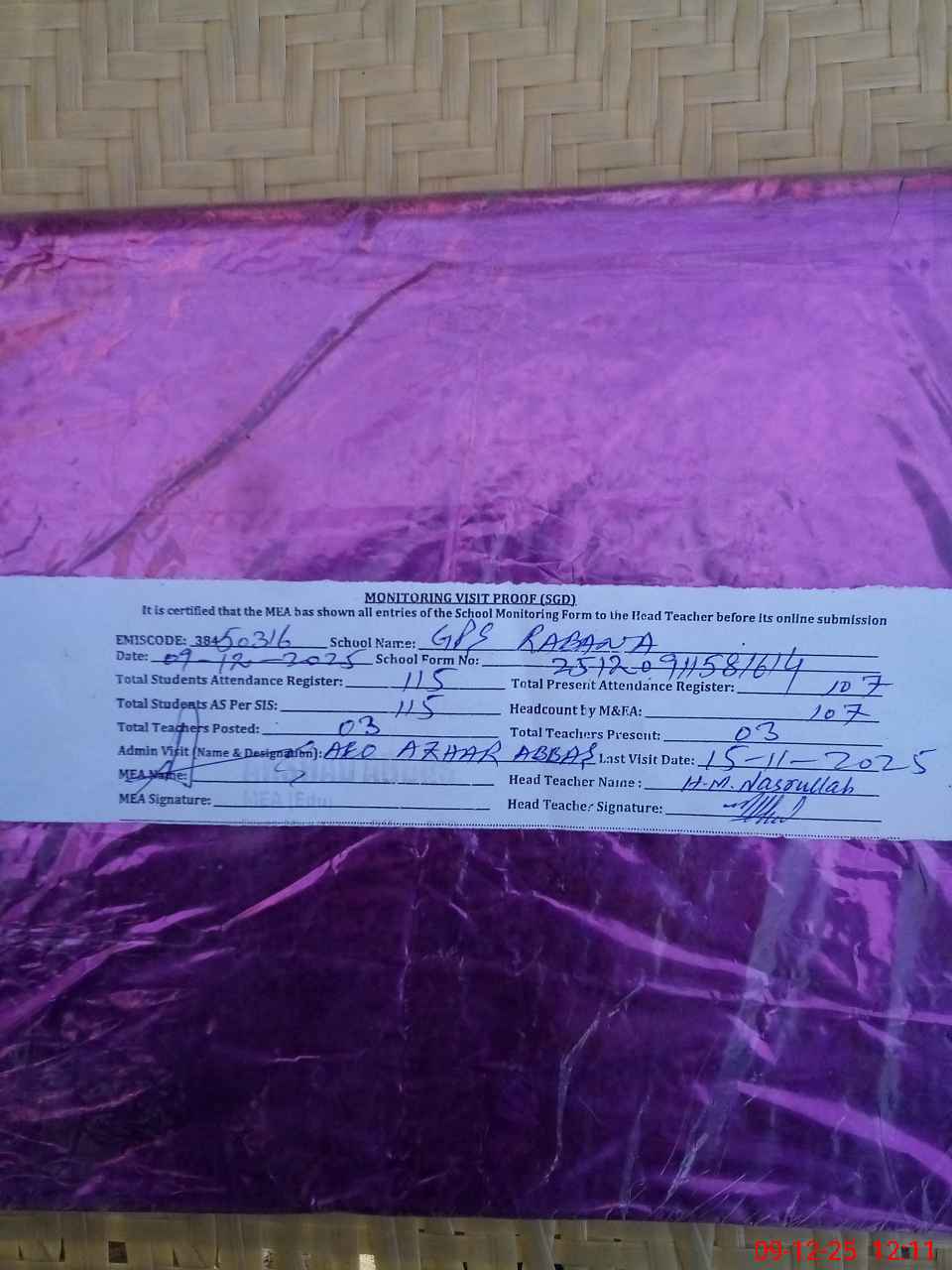 | EMIS Code: 38450316 | Name of School: GPS RABANA | |||