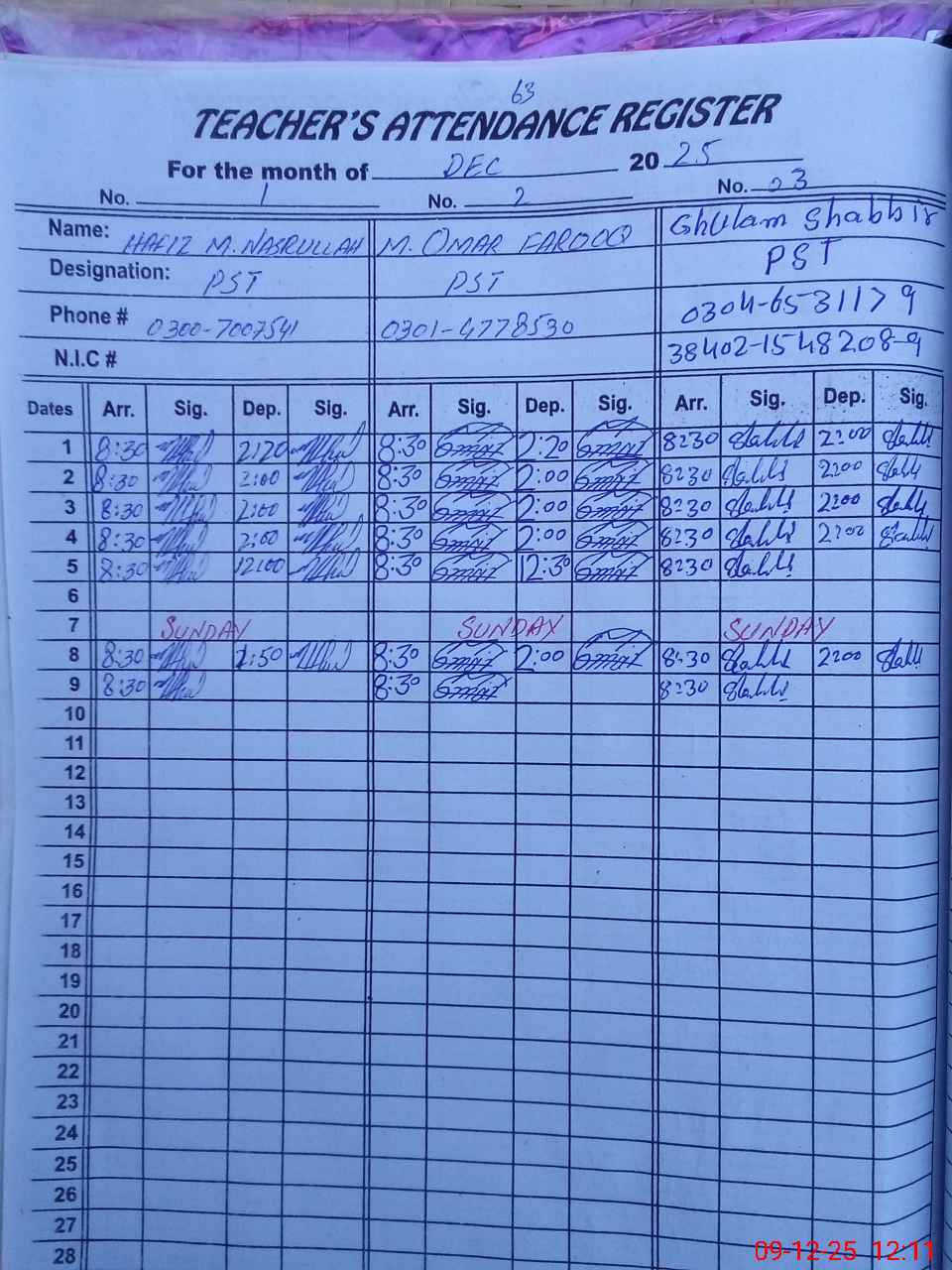 | Name: HA**** MU**** NA**** Designation: (School Headmaster's/Headmistress's) PST Phone/Cell Number: 03**** |