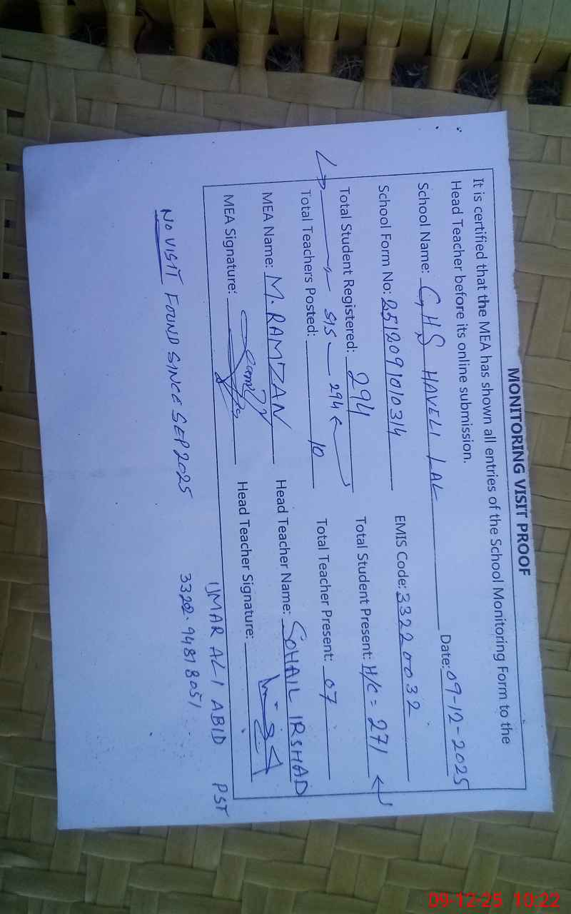 | EMIS Code: 33220032 | Name of School: GHS HAVELI LAL | |||