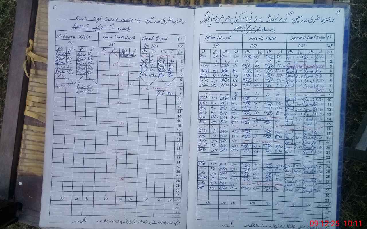 | CNIC | Full Name | Designation | R/C | Absence During Last Calender Month |