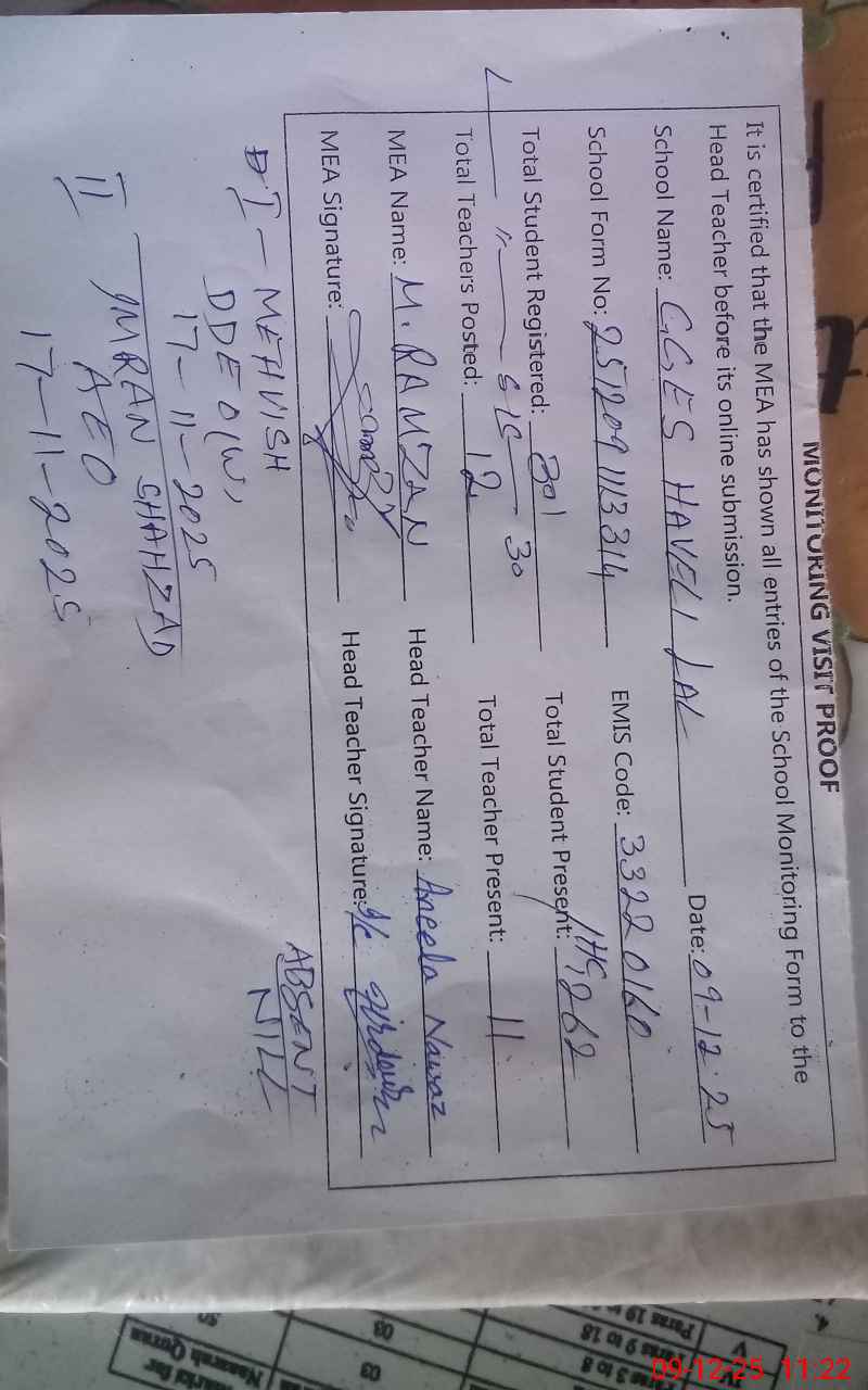 | EMIS Code: 33220160 | Name of School: GGES HAVELI LAL | |||