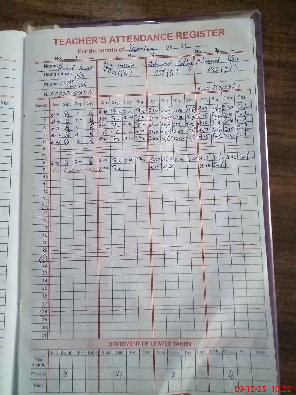 | 35**** | Mu**** Iq**** | Regular | 1 | 17 | 1 | 0 | 0 | 0 | 0 | 0 | 1 | Absent (Un-Authorized) | |