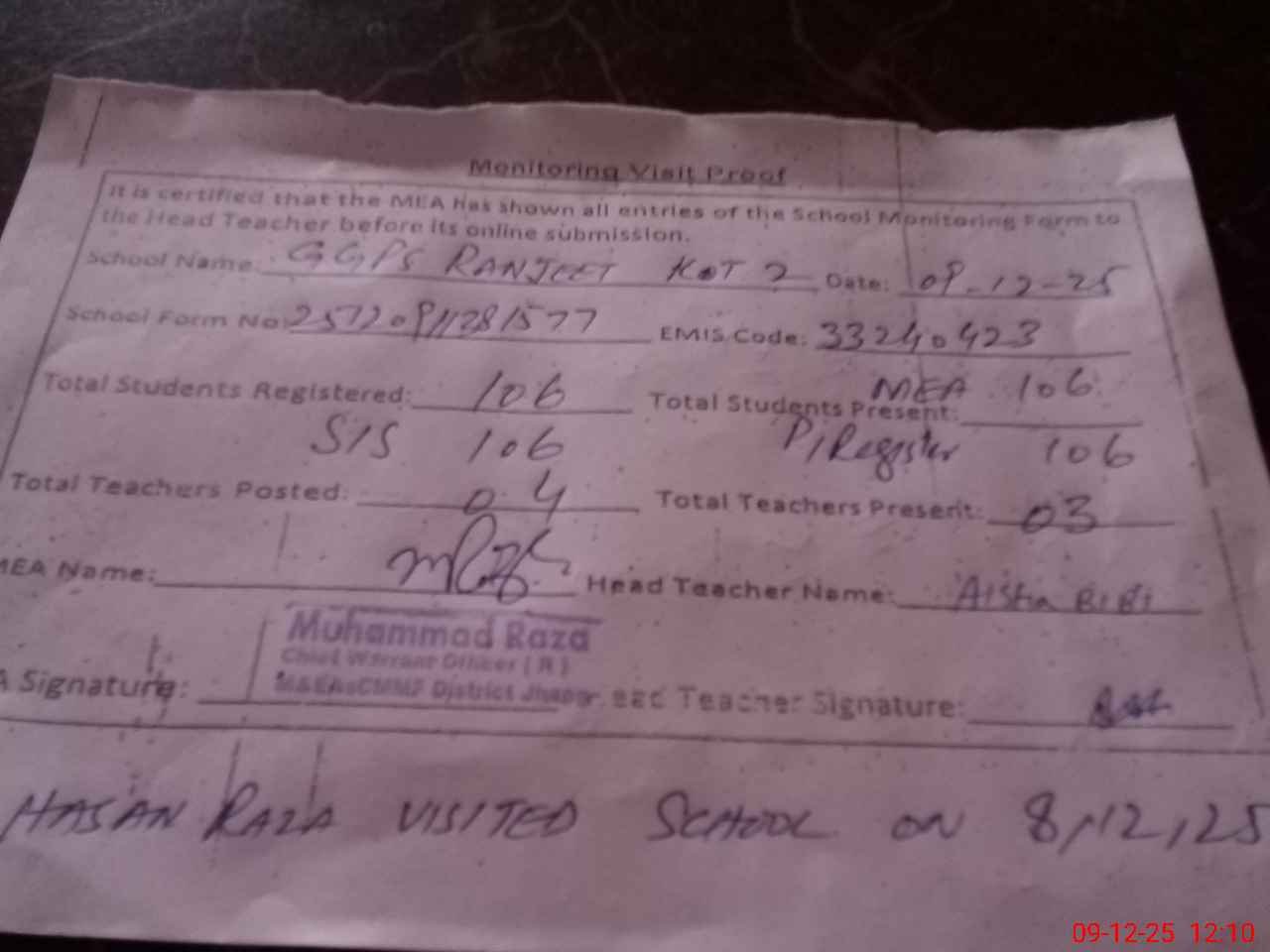 | EMIS Code: 33240423 | Name of School: GGPS RANJEET KOT NO 2 | |||