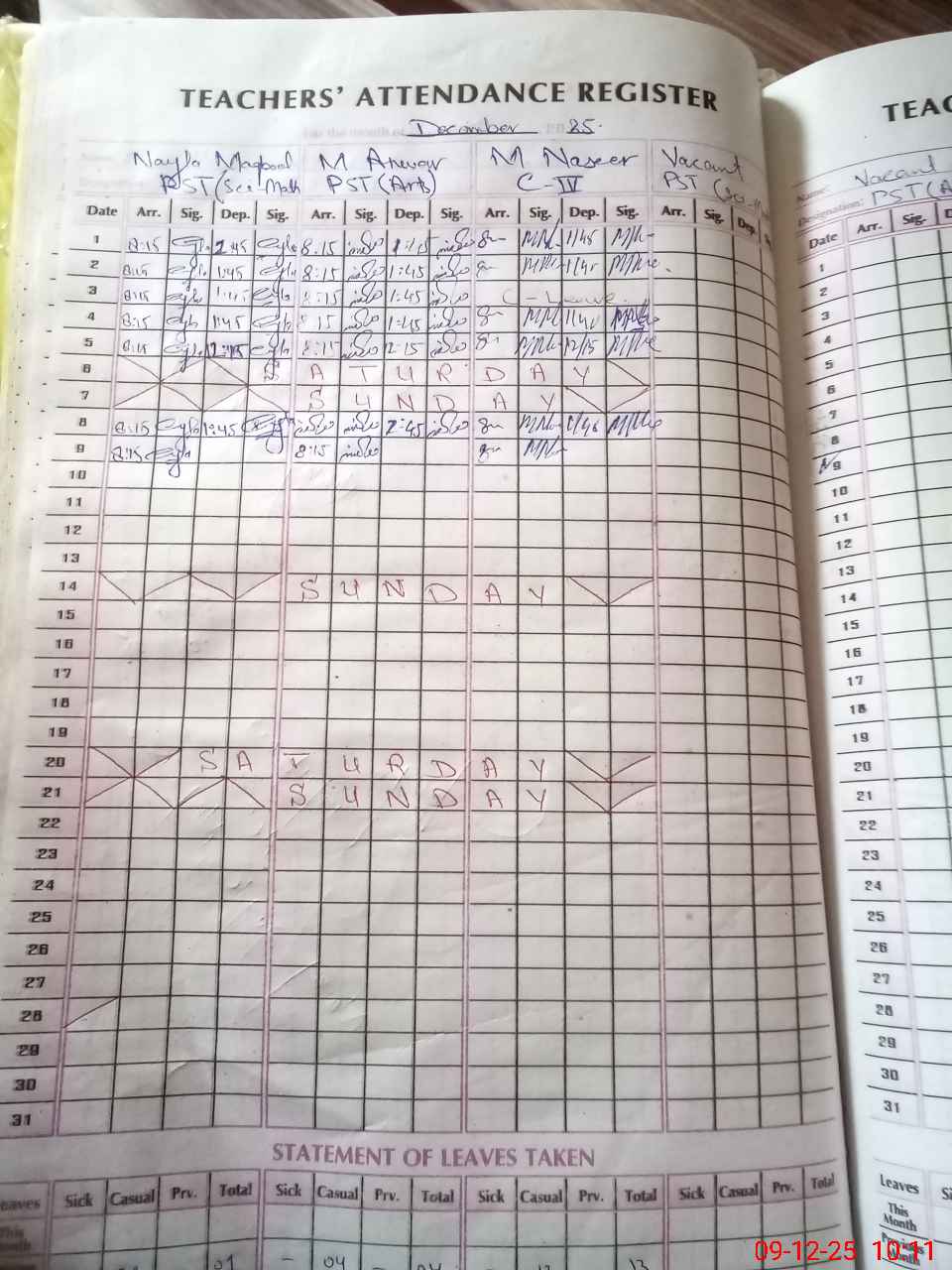 | Leave | Duty | Absent | Maternity | Medical | Ex- Pak |
