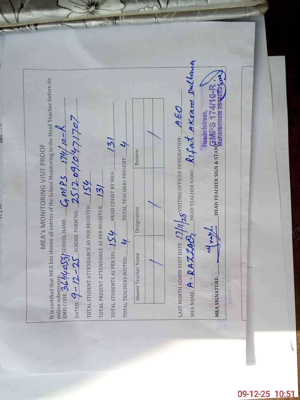 | EMIS Code: 36440531 | Name of School: GMPS 174/10-R MUHARAN WALA, JAHANIAN | |||