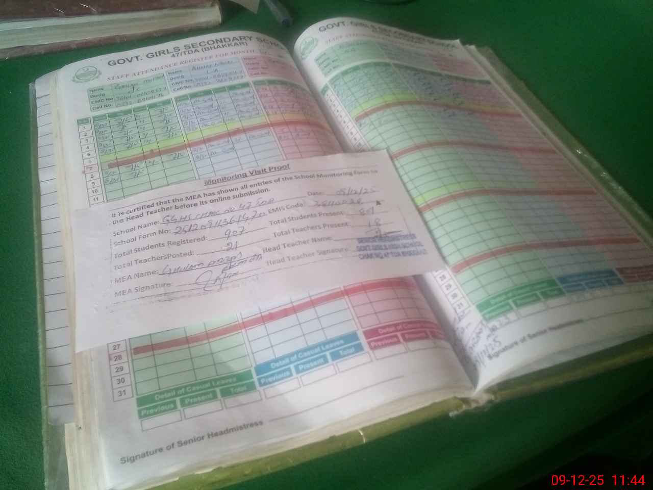 | Remarks (Use Separate Page if Required): last seen by Name Malik Munir Ahmad Designation DEO Date 03 Dec 2025 | |||||