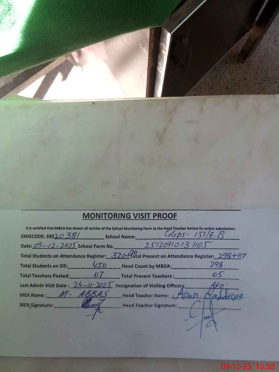 | EMIS Code: 39220381 | Name of School: GGPS 151 EB PO DILLOW WALA ARIFWALA | |||