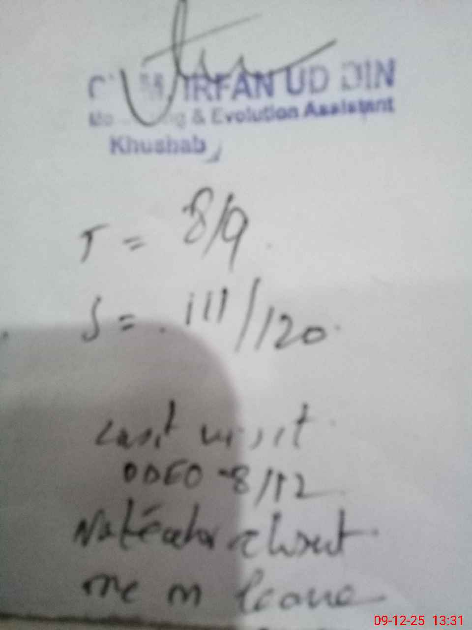 | Remarks (Use Separate Page if Required): GES mustabad student on sis 120 student on register 120 head count 111 no teacher absent one on leave last visit ddeo 8/12 | |||||