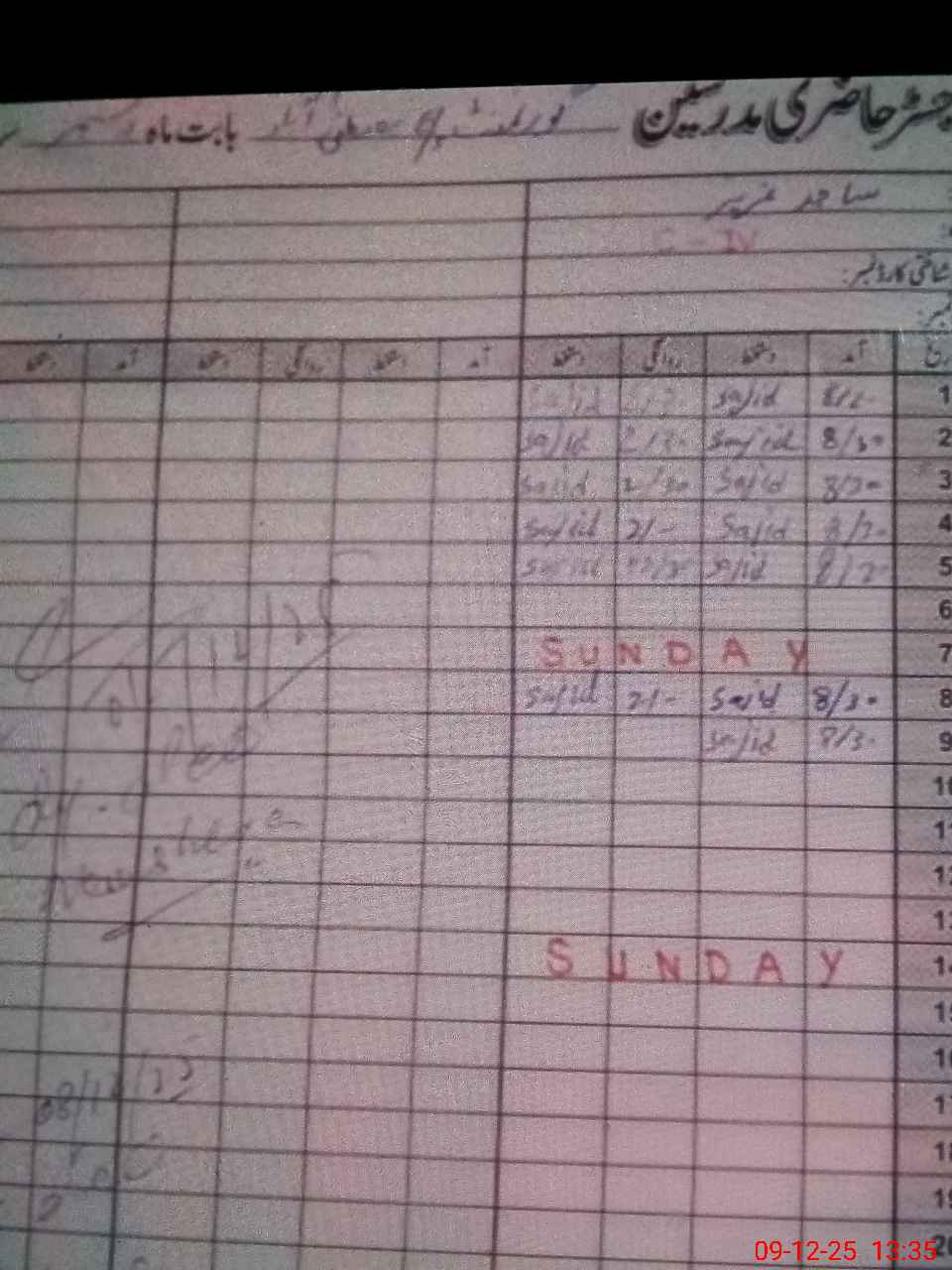 | CNIC | Full Name | Designation | R/C | Absence During Last Calender Month |