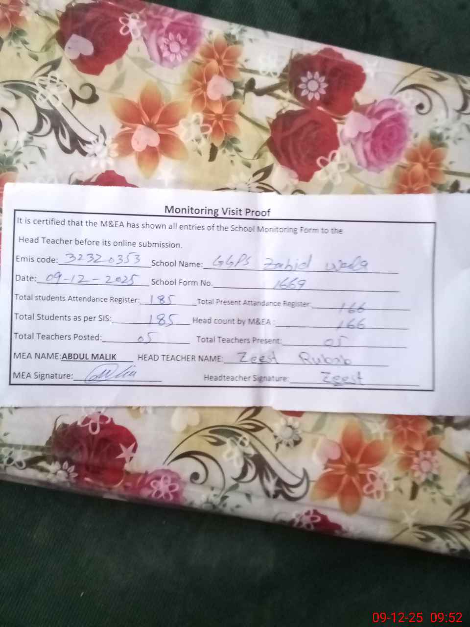 | EMIS Code: 32320353 | Name of School: GGPS ZAHID WALA | |||