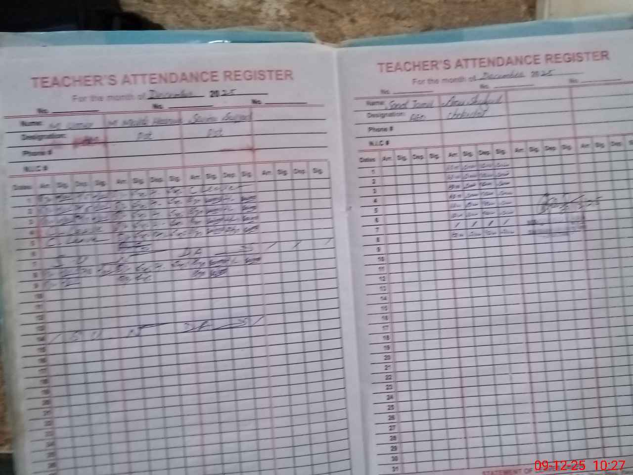 | CNIC | Full Name | Designation | R/C | Absence During Last Calender Month |