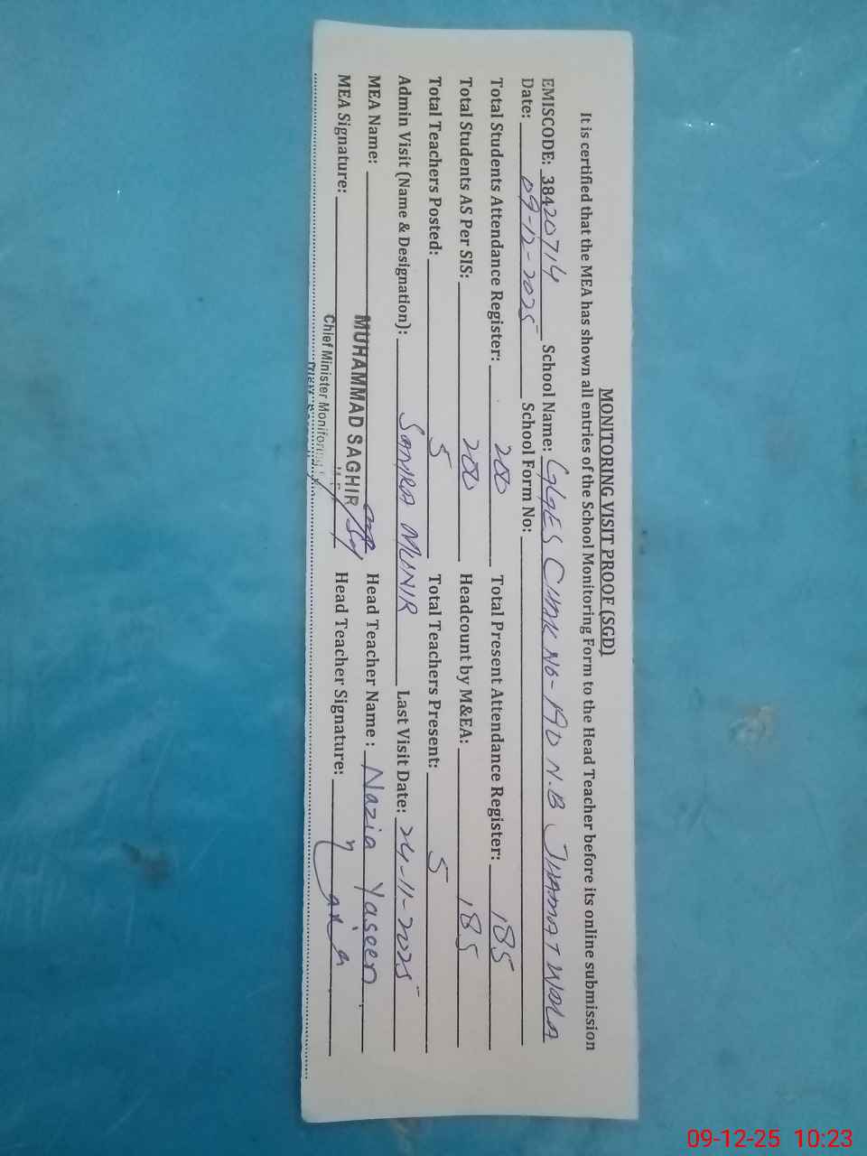 | EMIS Code: 38420714 | Name of School: GGES CHAK NO.190 NB JHAMAT WALA | |||