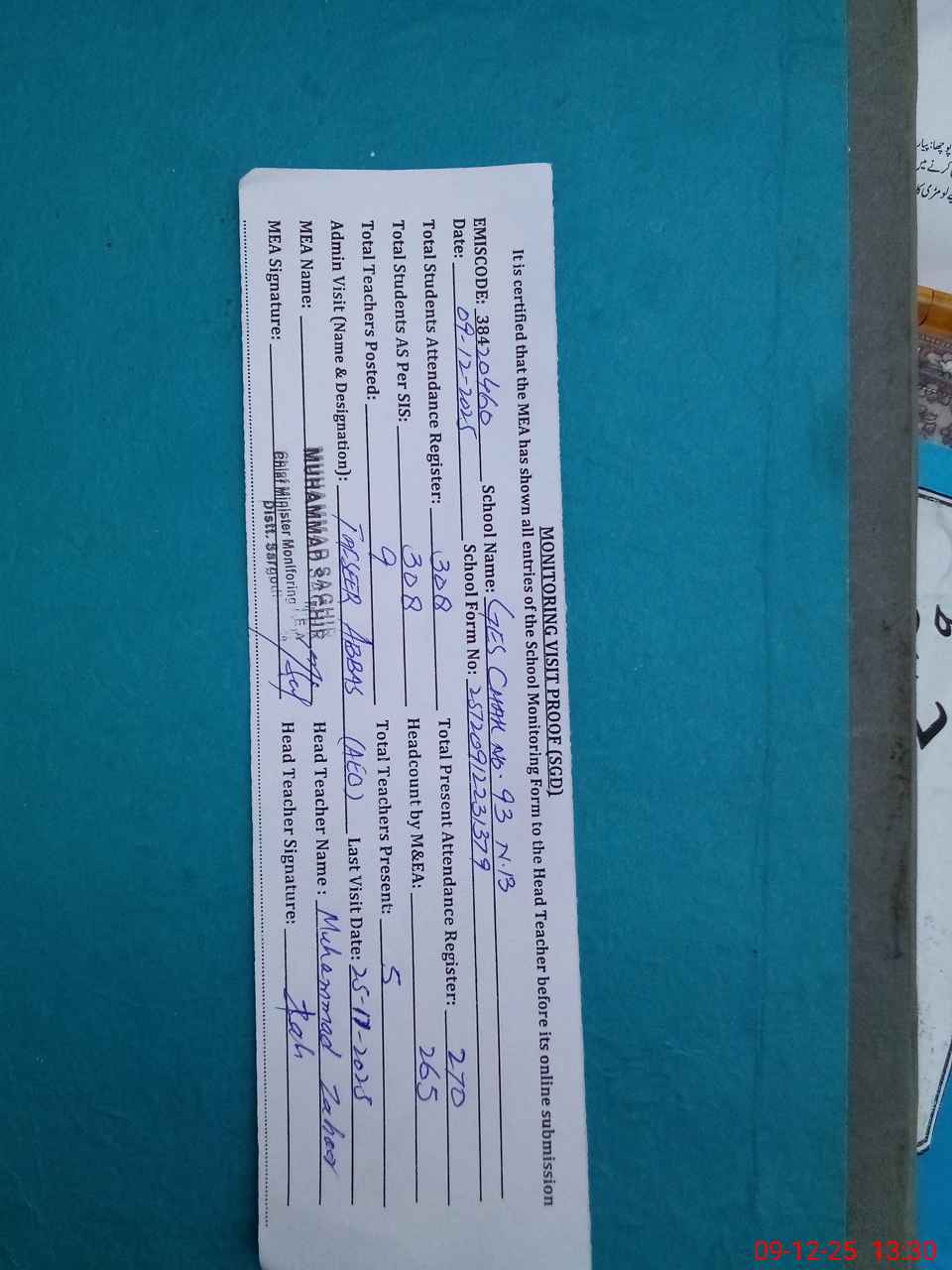 | EMIS Code: 38420460 | Name of School: GES CHAK NO.93 NB | |||