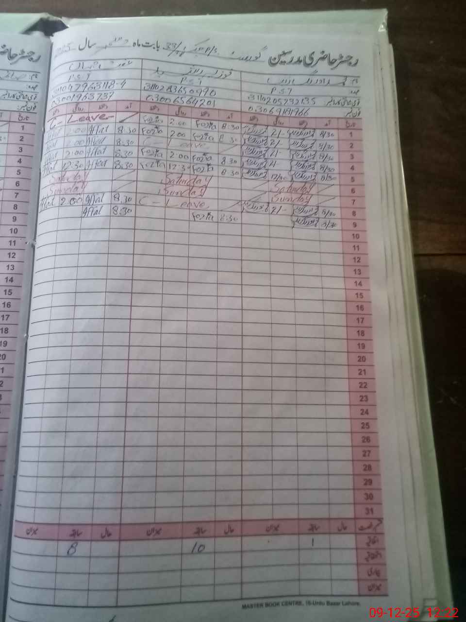 | CNIC | Full Name | Designation | R/C | Absence During Last Calender Month |