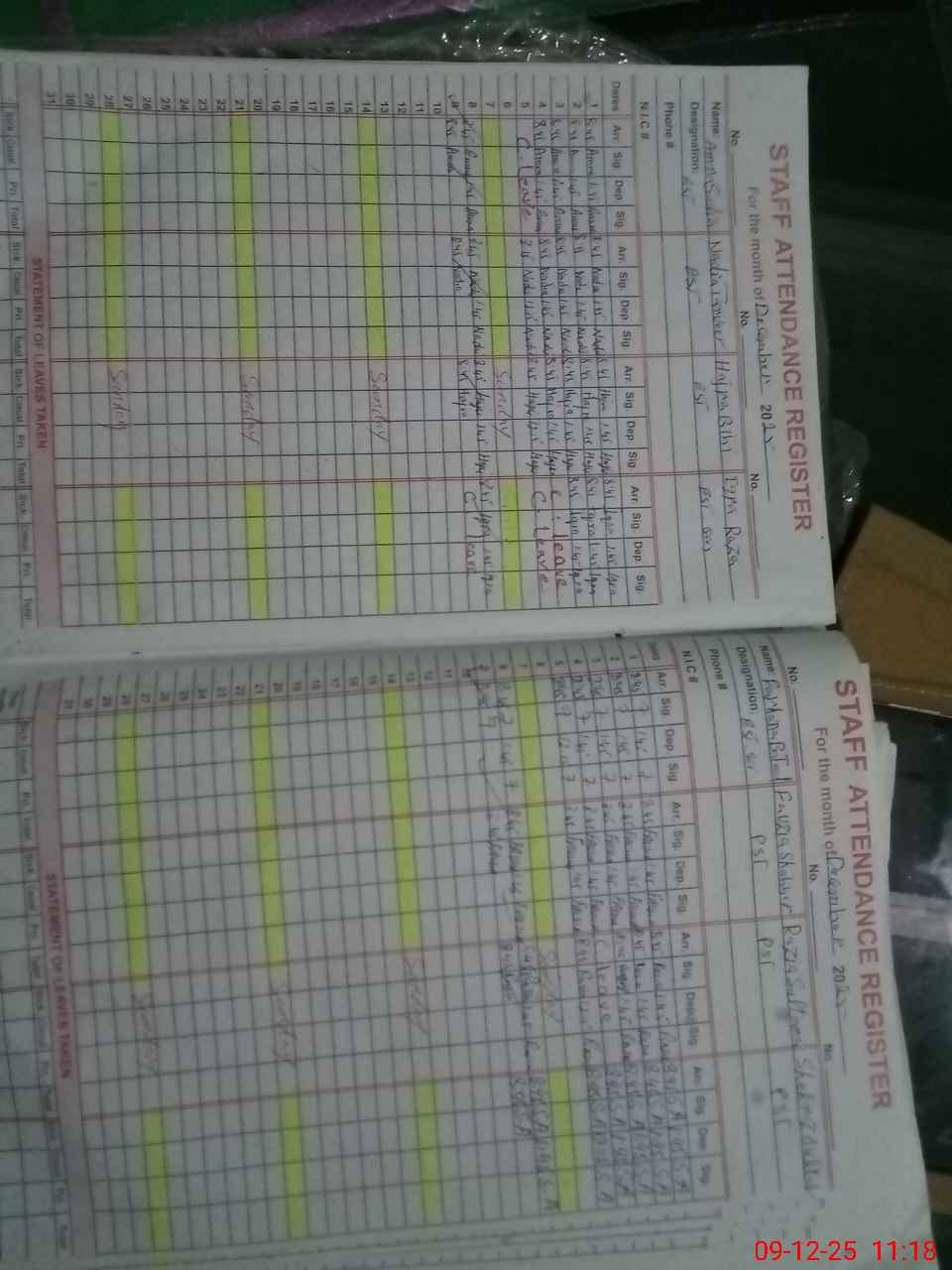 | CNIC | Full Name | Designation | R/C | Absence During Last Calender Month |