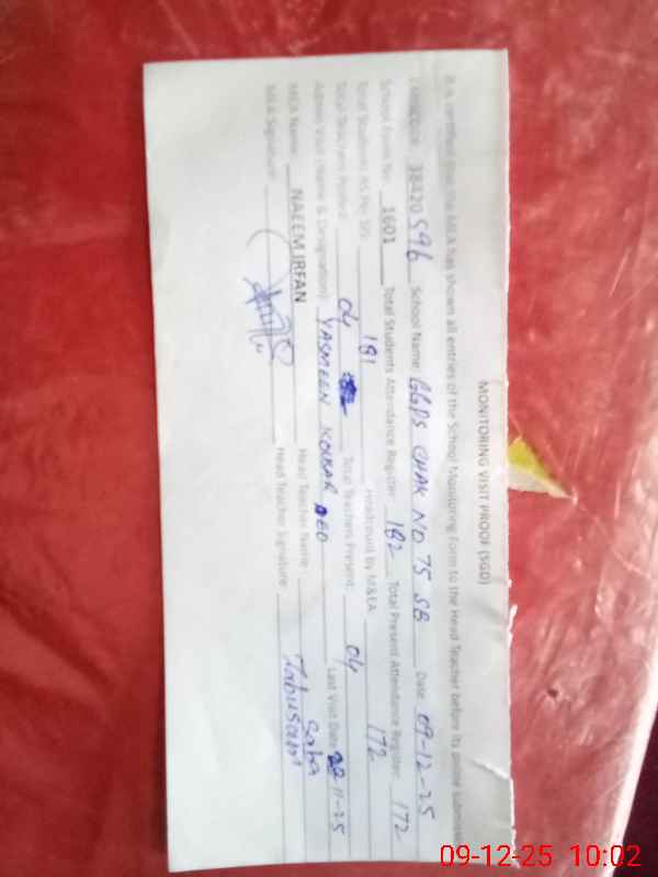 | EMIS Code: 38420596 | Name of School: GGPS CHAK NO.75 SB | |||