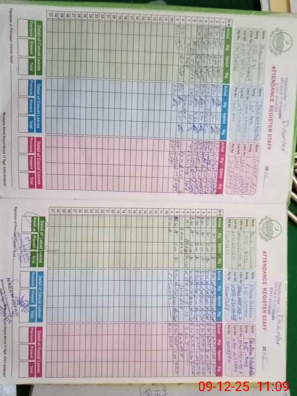 | CNIC | Full Name | Designation | R/C | Absence During Last Calender Month |
