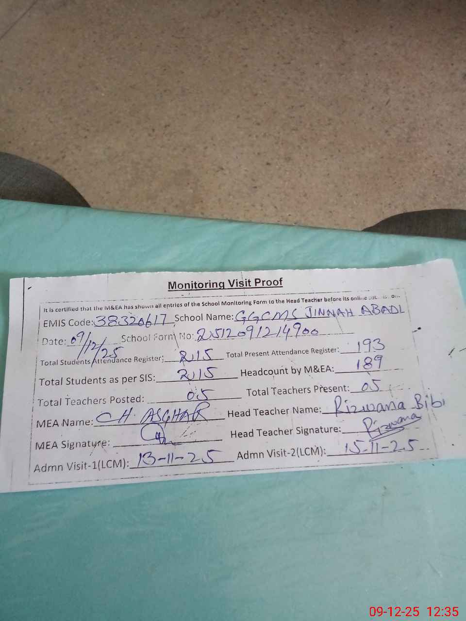 | EMIS Code: 38320617 | Name of School: GGCMS JINNAH ABADI | |||