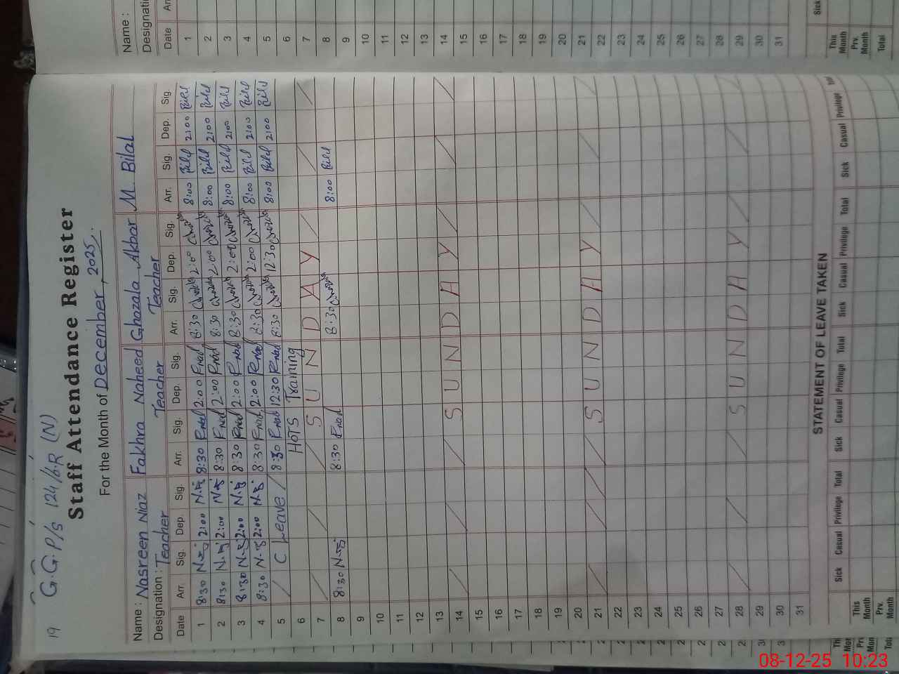 | CNIC | Full Name | Designation | R/C | Absence During Last Calender Month |