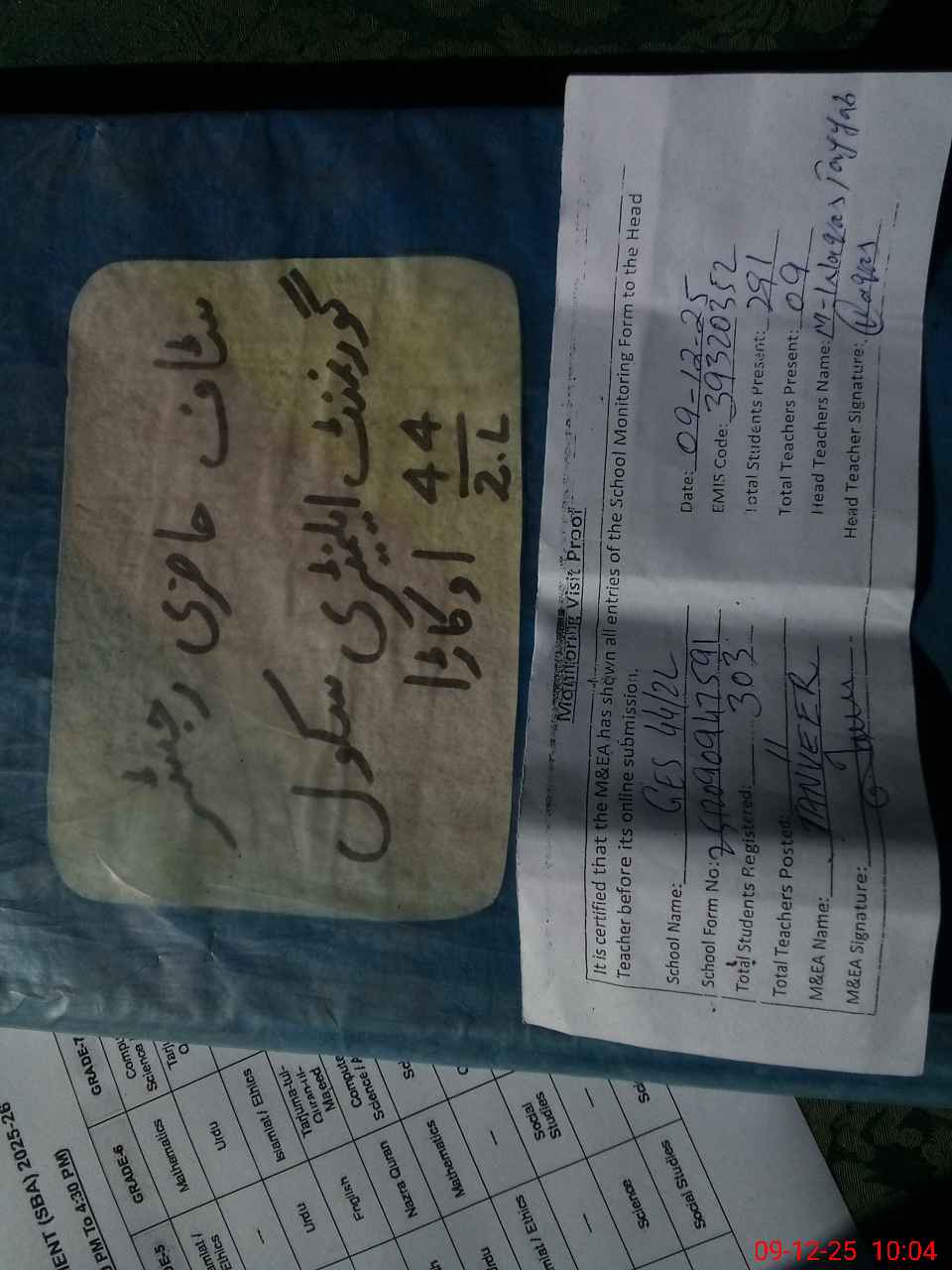 | Attendance Register | Head Teacher | MEA with School | Visit Proof |
