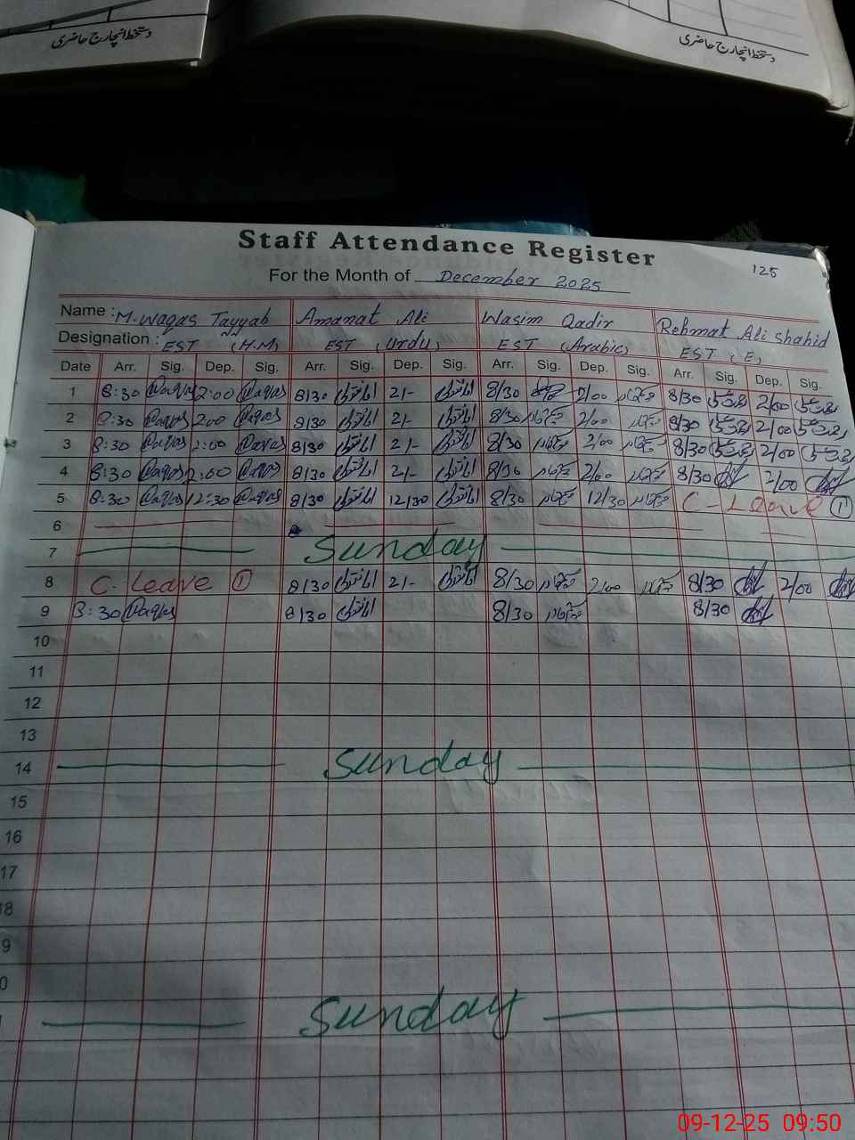 | CNIC | Full Name | Designation | R/C | Absence During Last Calender Month |