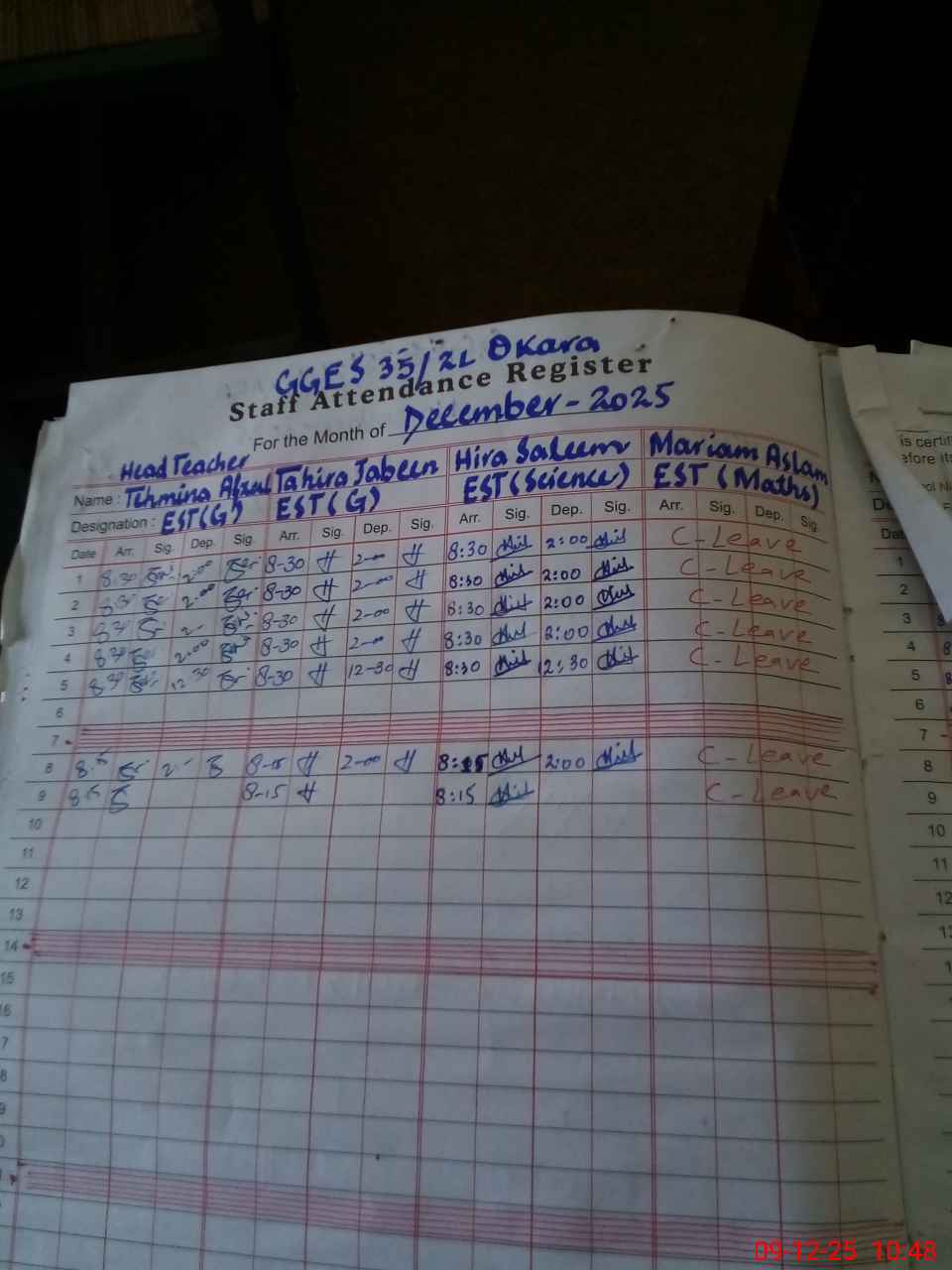 | District: OKARA | Tehsil: OKARA | Markaz: KARMAN WALA - FEMALE | Level: Middle | |