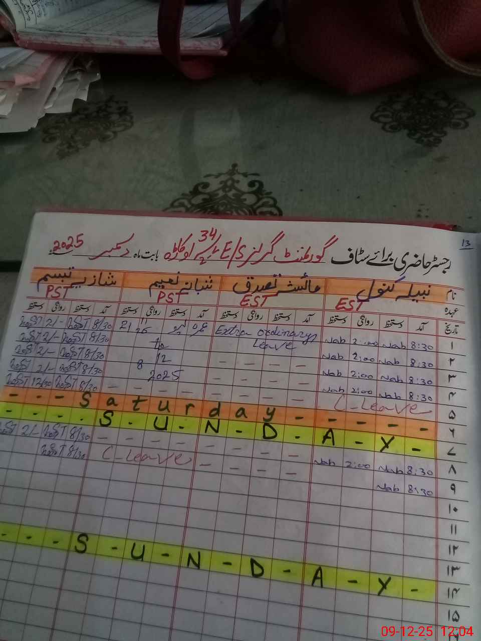 | CNIC | Full Name | Designation | R/C | Absence During Last Calender Month |