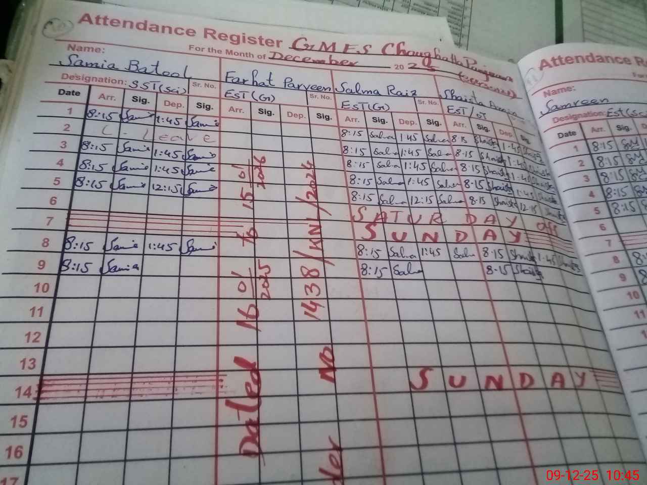 | CNIC | Full Name | Designation | R/C | Absence During Last Calender Month |