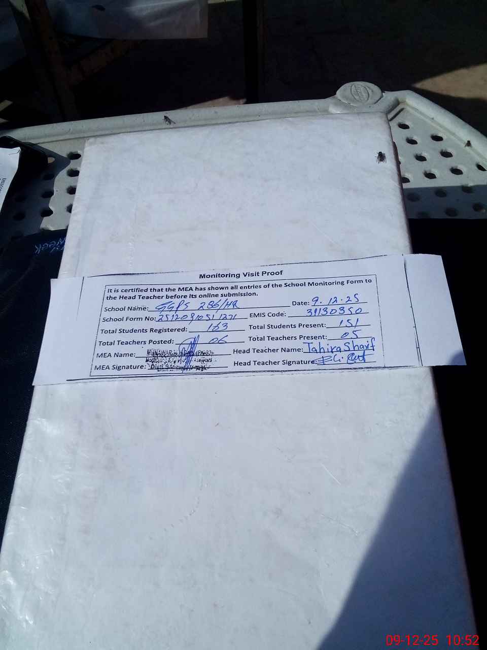 | EMIS Code: 31130350 | Name of School: GGPS CHAK NO 286 HR | |||