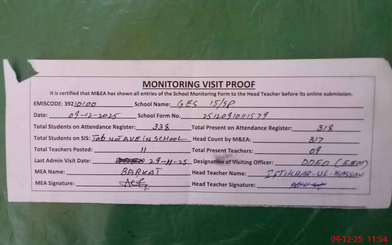 | EMIS Code: 39210100 | Name of School: GES 15/SP P.O PAKPATTAN | |||