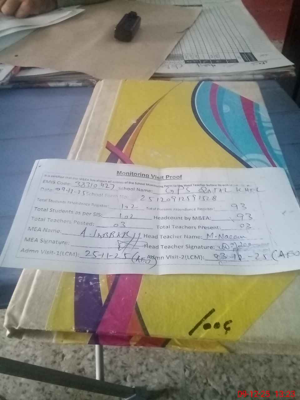 | EMIS Code: 38310427 | Name of School: GPS QATAL KHEL | |||